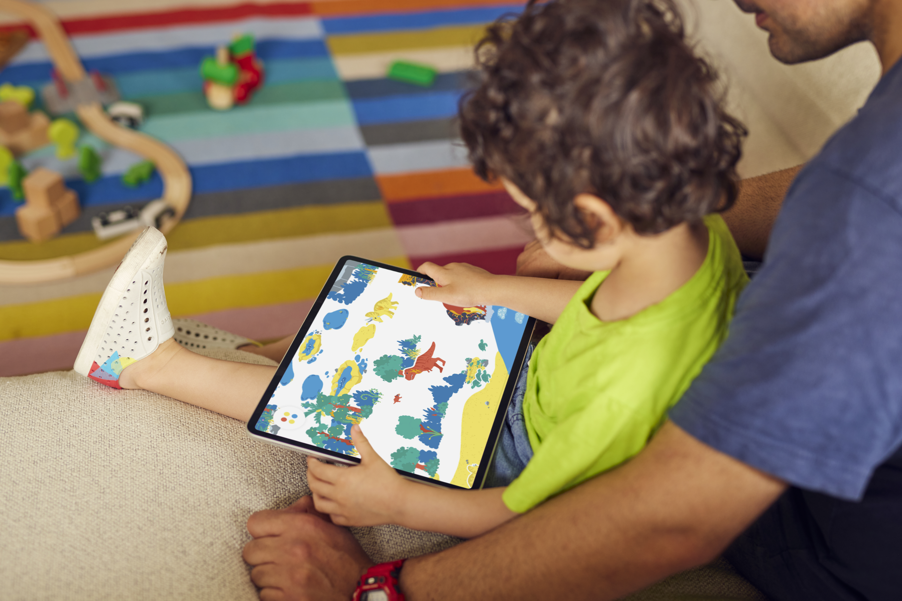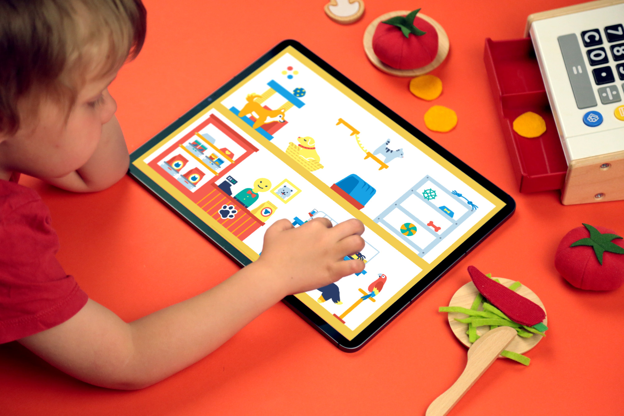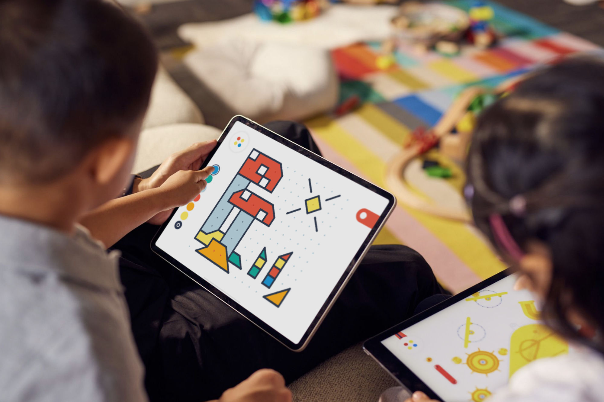 Kids intuitively know what to do with each toy and can self-guide their own play. The entire playroom is designed for collaborative play so kids can share a device and play together at the same time.