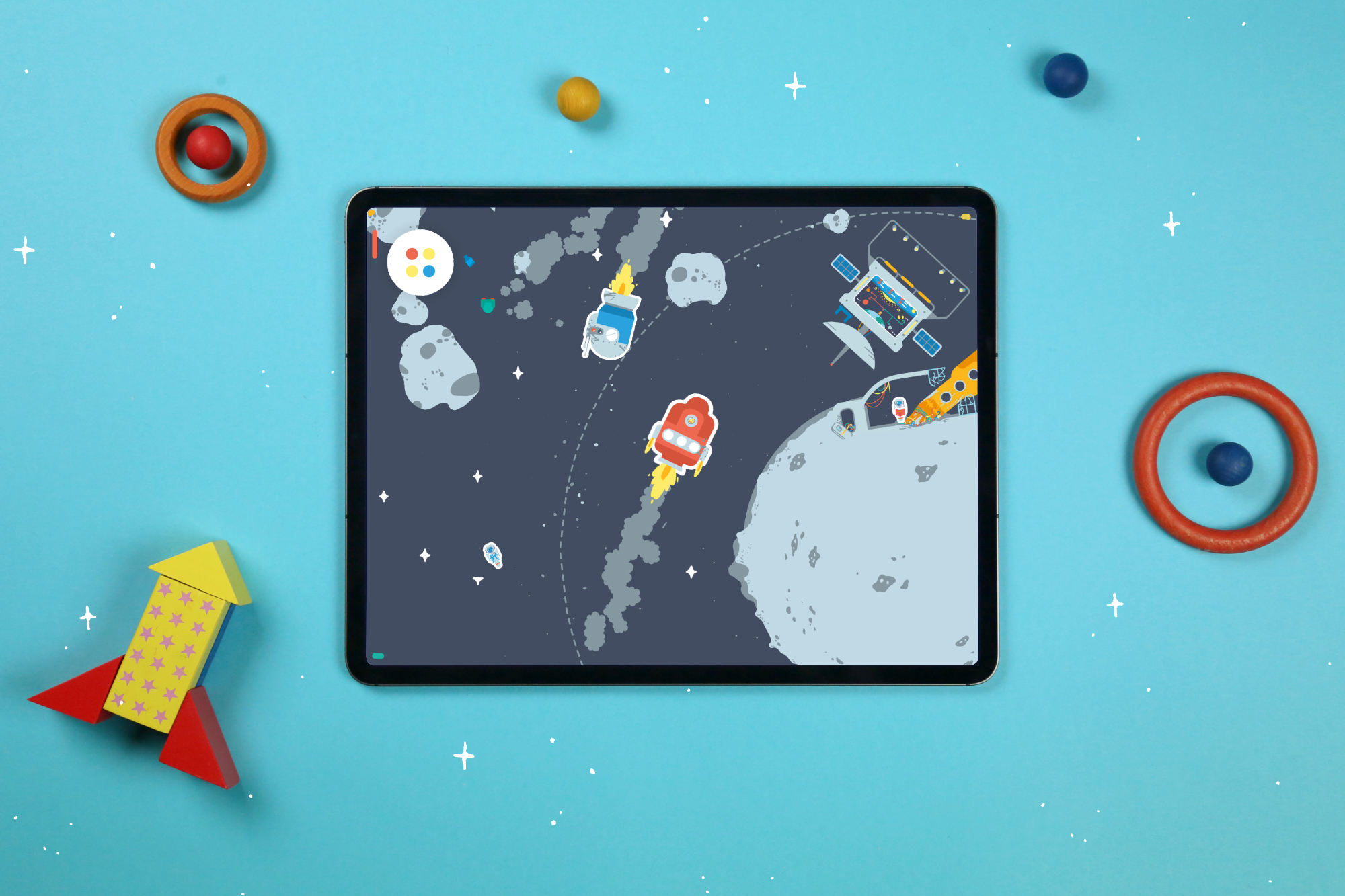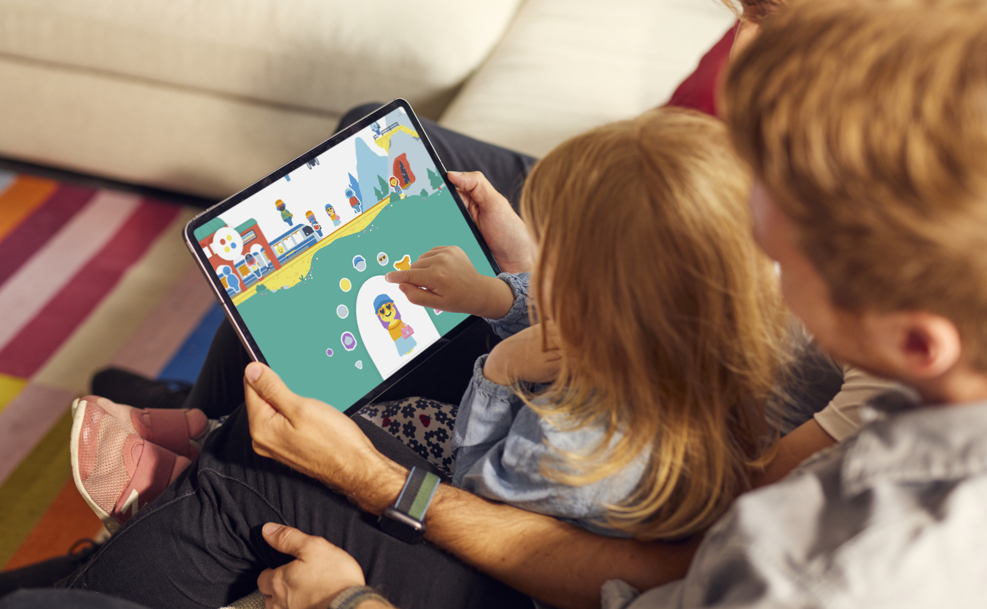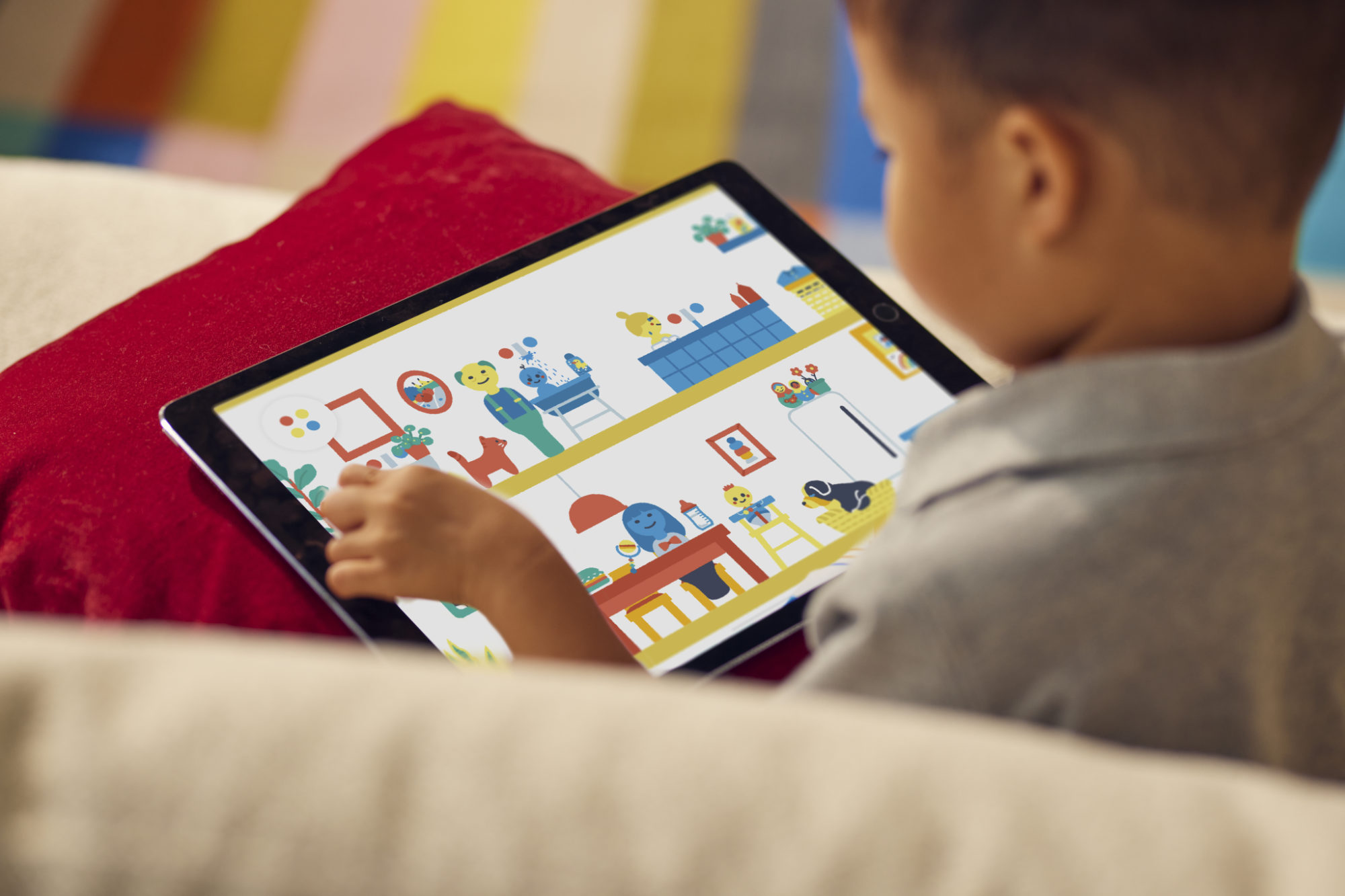 Kids intuitively know what to do with each toy and can self-guide their own play. The entire playroom is designed for collaborative play so kids can share a device and play together at the same time.