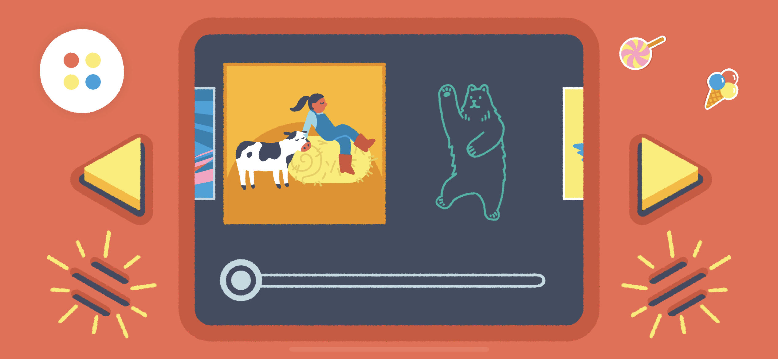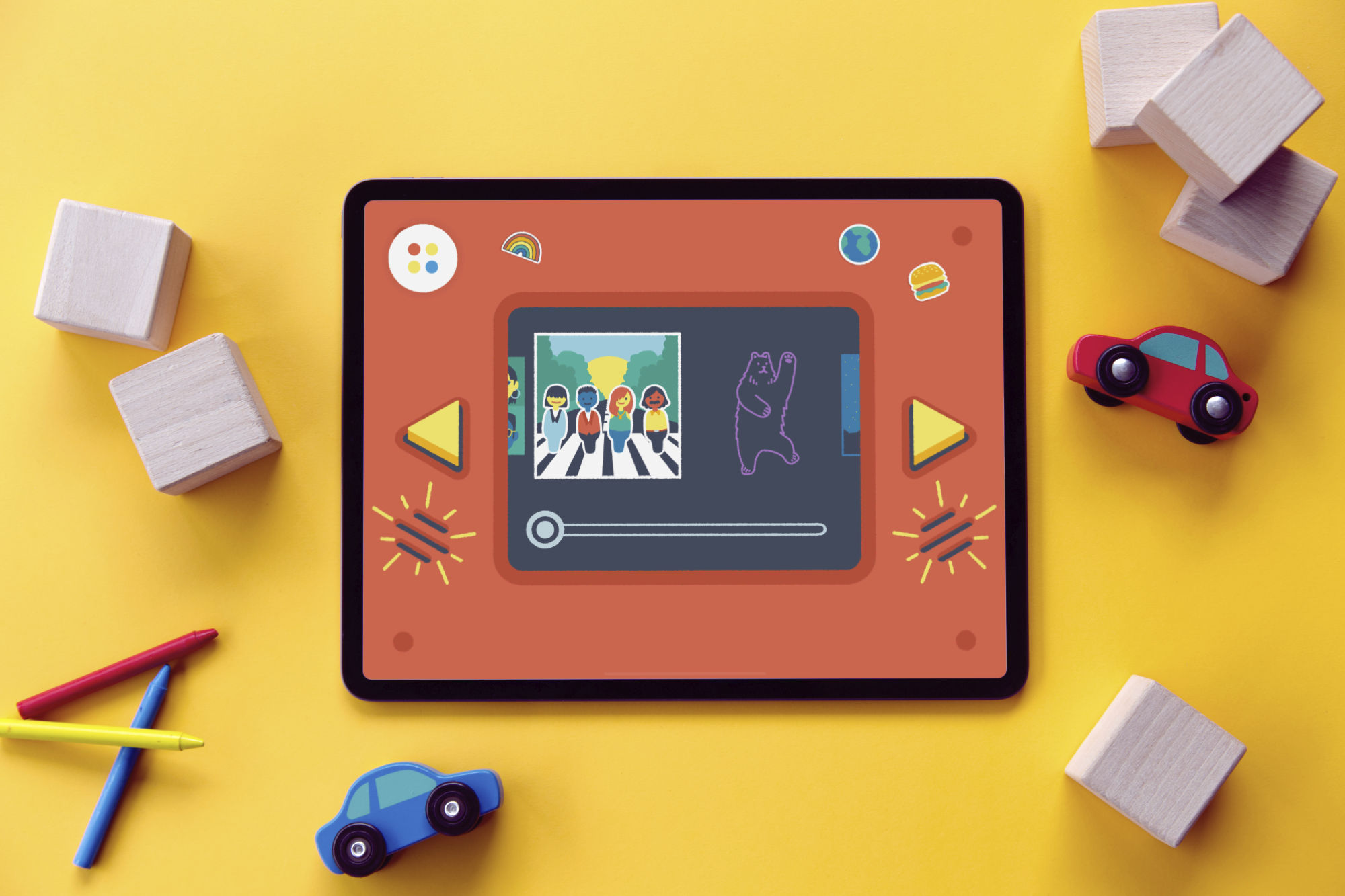 Our hand-drawn animation and soft sounds set the tone for peaceful playtime, captivating kids without over-stimulating them.