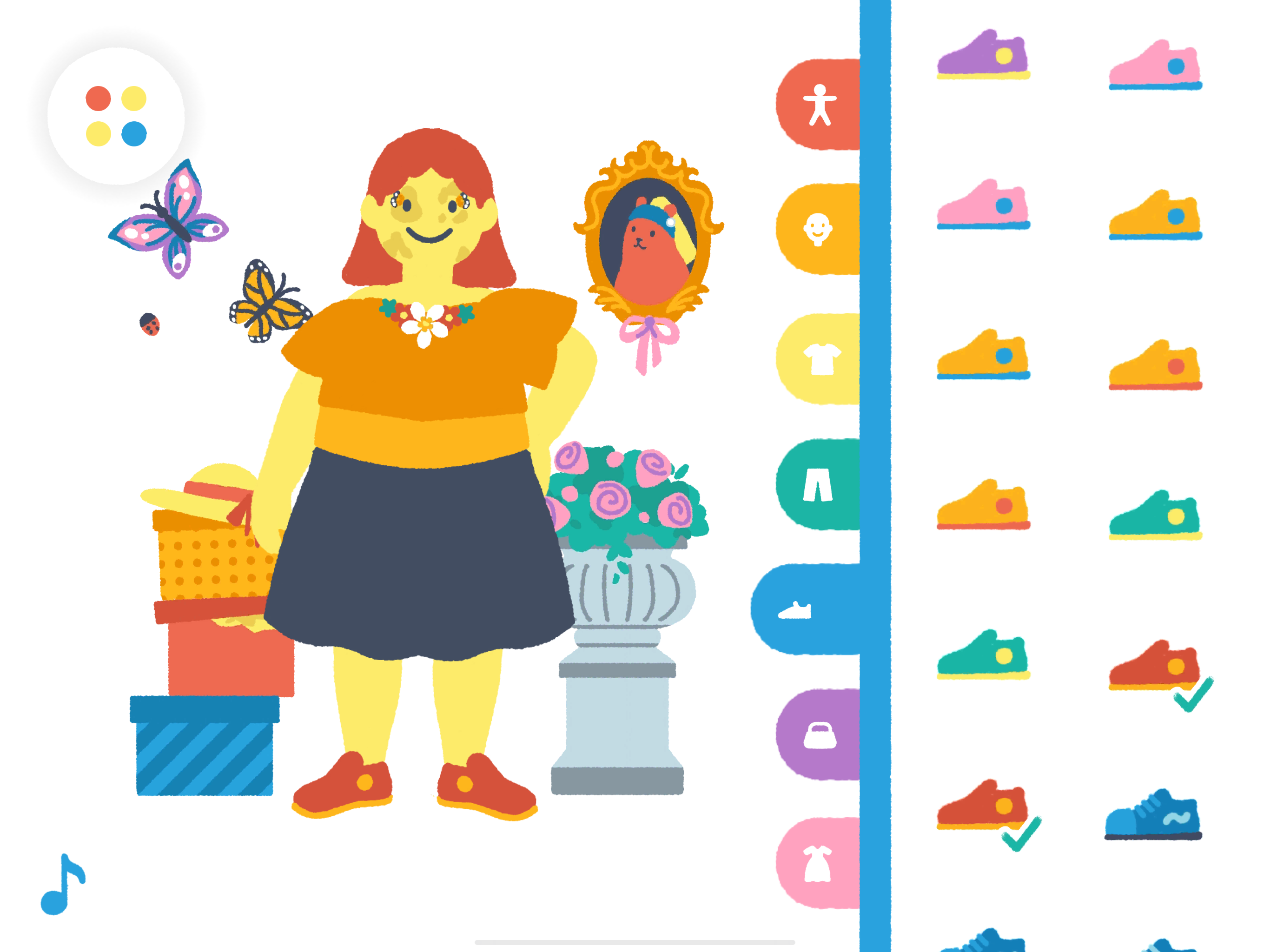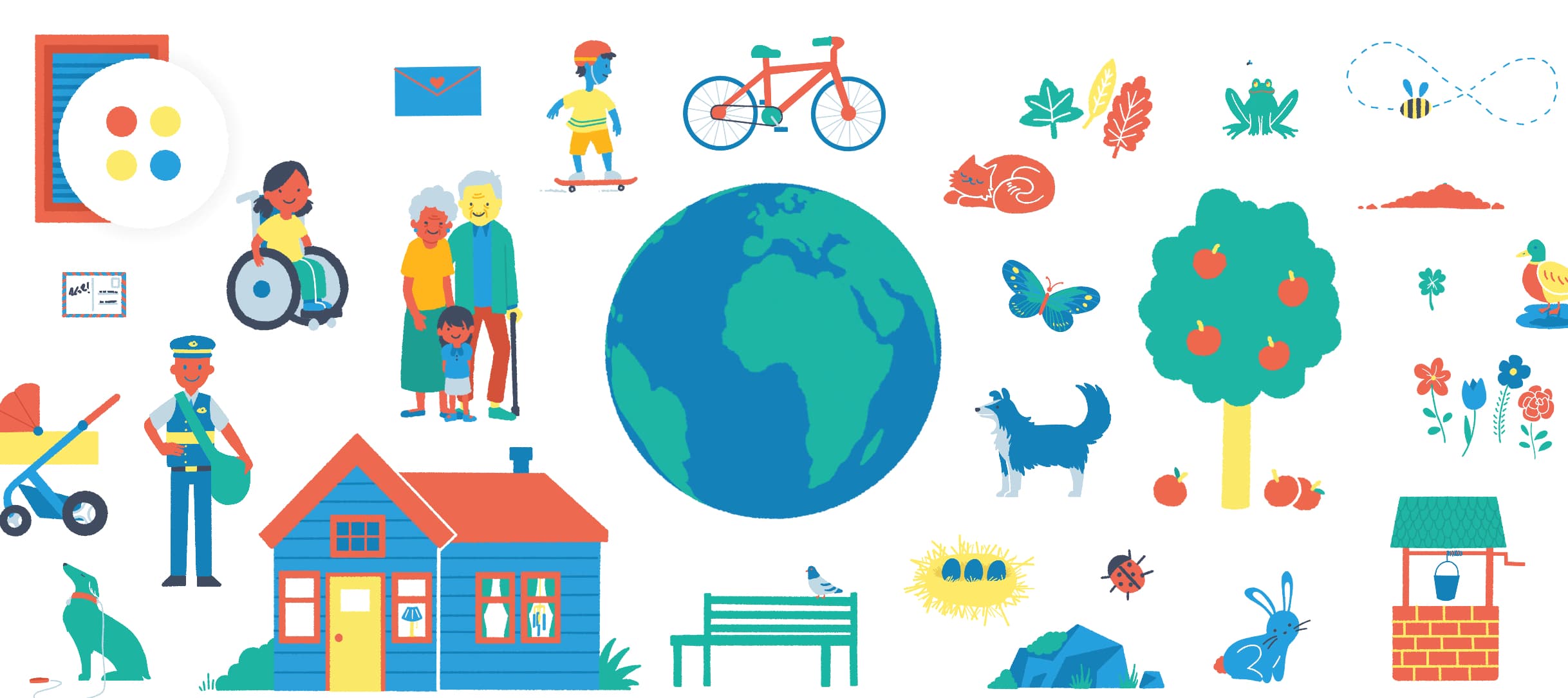 Everyone is welcomed and loved in Pok Pok! We aim to reflect the diversity of the families who play Pok Pok by representing a variety of people, family structures, genders, races, and abilities.